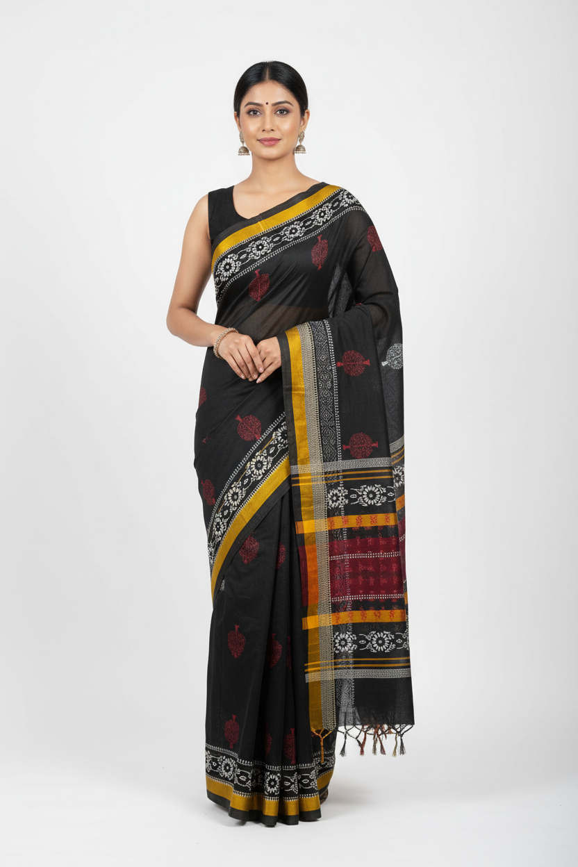 Upgrade your everyday style with this elegant black cotton saree, designed for comfort and simplicity. Made from high-quality cotton fabric, this saree is soft, breathable, and perfect for all-day wear.